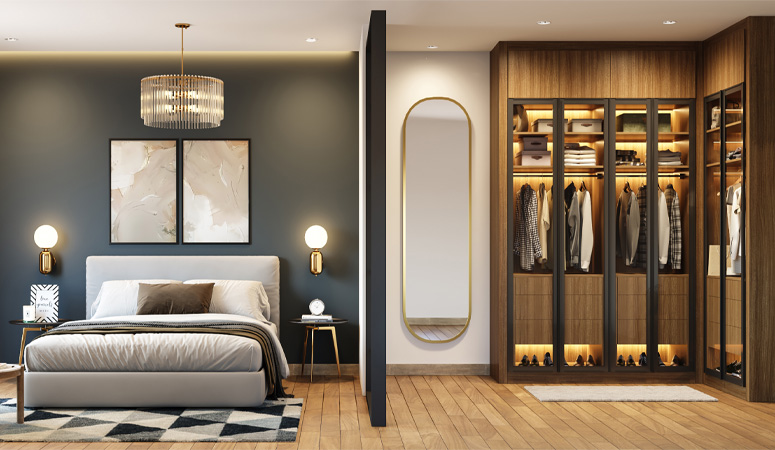 Aahis Interior design ideas is your one-stop shop for wardrobe solutions. Our modular wardrobe designs are ergonomically designed and come in a wide spectrum of colours, finishes and materials. Built for smart storage, our cupboard designs are function-forward, easy to use and promise to make stunning additions to the spaces in your bedroom. Explore our extensive collection of wardrobe interior designs and find one you can customize for your bedroom today.